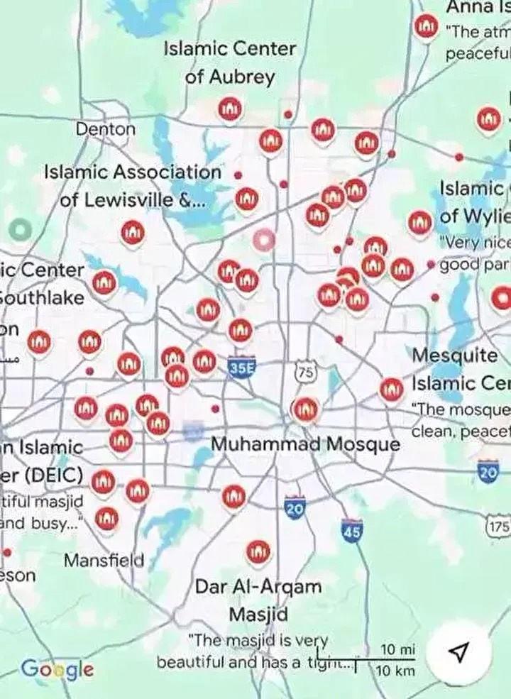 Taramalar, 2010–2020 arasında cami sayısının yüzde 35 artışla 166’dan 224’e yükseldiğini; 2025 yılı itibarıyla Google Maps, çevrimiçi dizinler ve topluluk listeleri üzerinde yapılan taramalarda, Teksas’ta 330’un üzerinde cami ve İslami merkez bulunduğunu ortaya koyuyor.